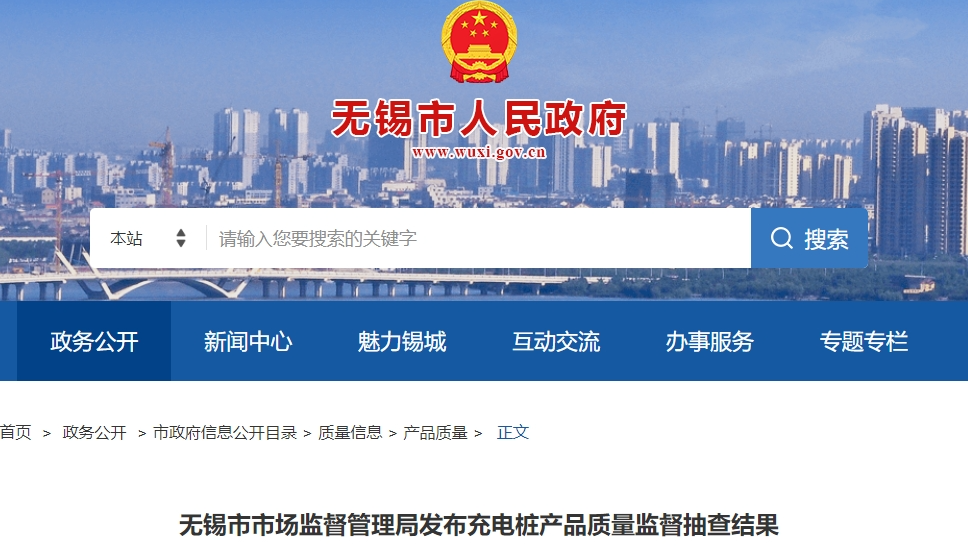内容概述 | 无锡市市场监督管理局发布充电桩产品质量监督抽查结果 |