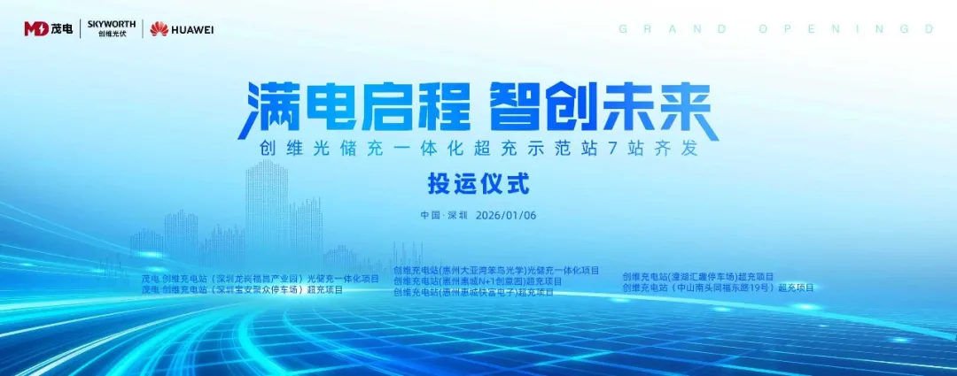 2026年1月6日,由深圳创维光伏科技有限公司与华夏金融租赁有限公司联合打造的创维光伏“光储充”一体化示范站集群,在深圳龙岗福昌产业园正式开业投运。七站同步启用,标志着“光储充”一体化商业模式迈入成熟化、规模化发展新阶段。