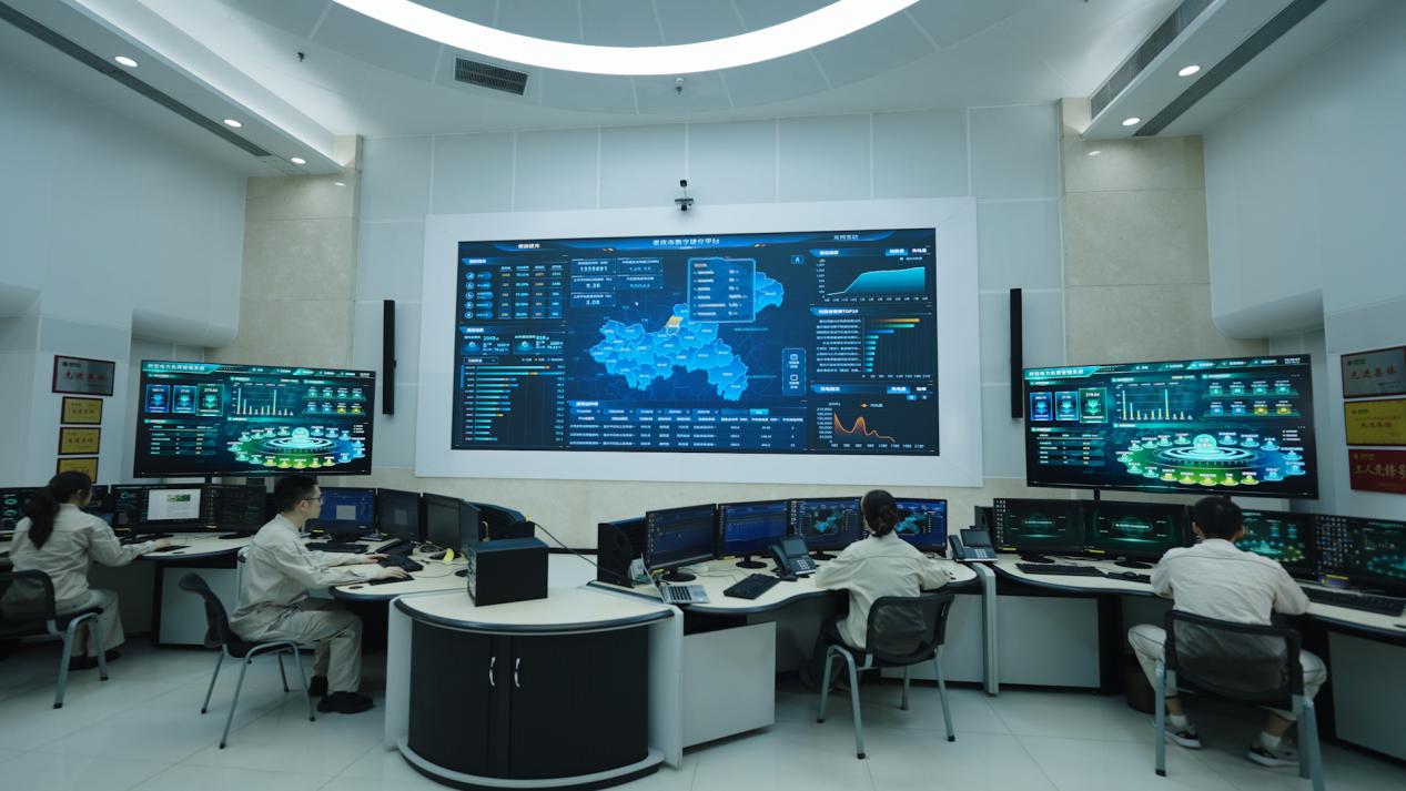 工作人员在重庆市数字捷充平台监控超充桩运行状态。贺婷婷/摄