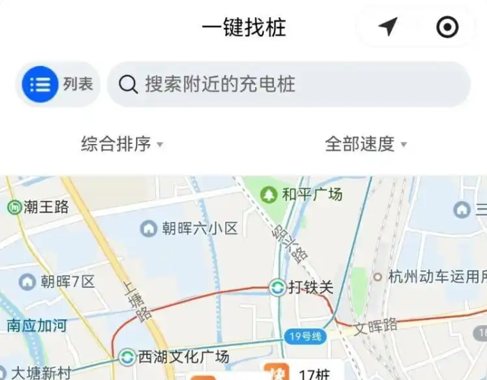 杭州停车小程序上的“一键找桩”功能