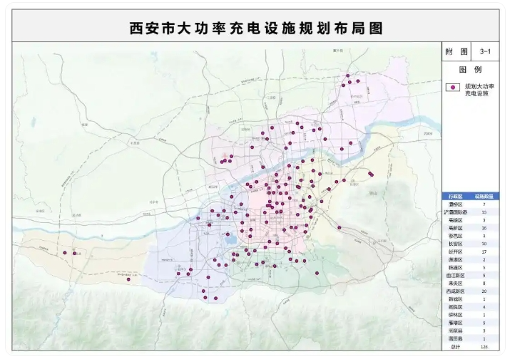 而随着此次《蓝皮书》发布的“西安市大功率充电设施规划布局图”,西咸新区也得到了最多的规划支持。
