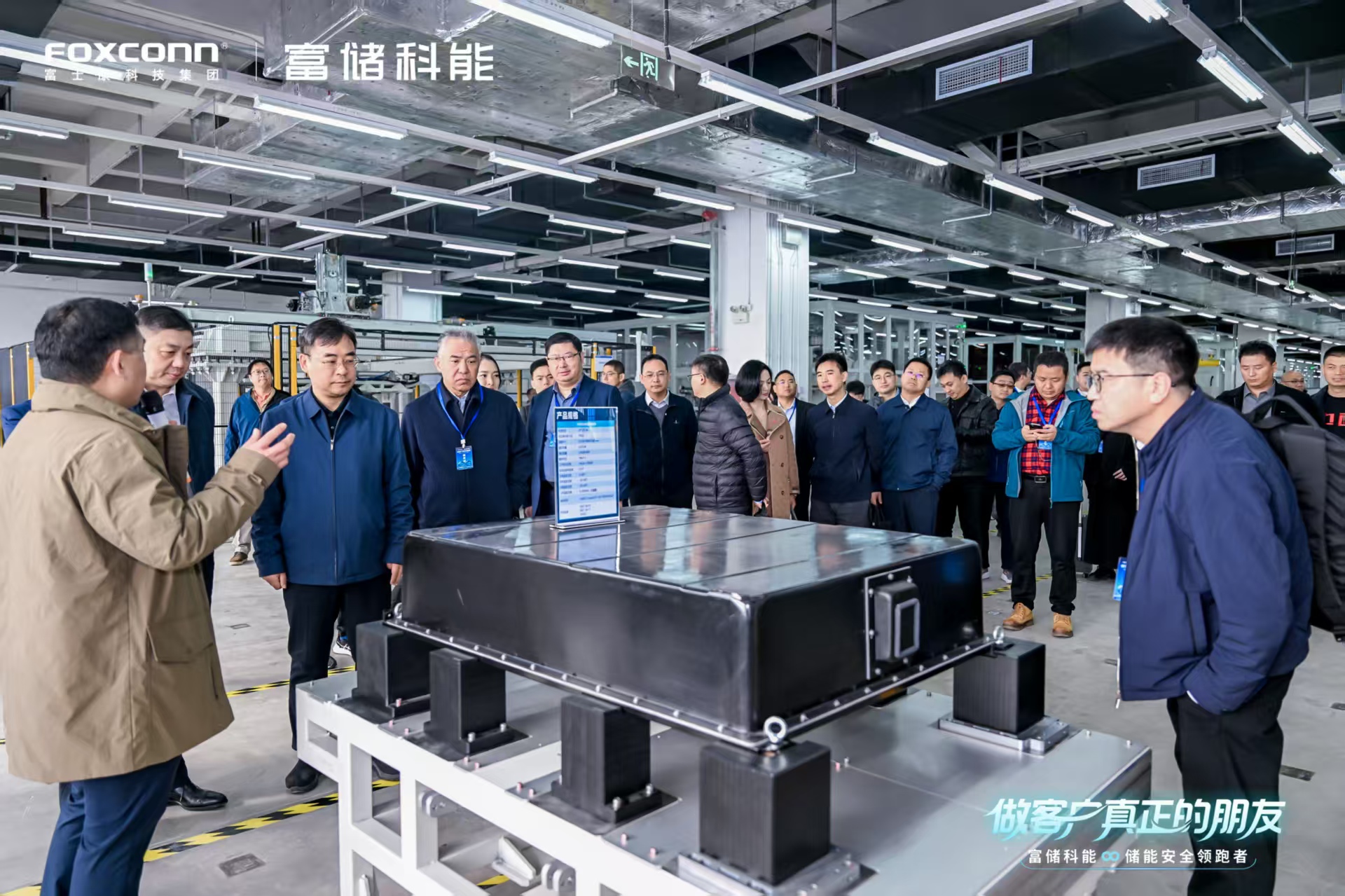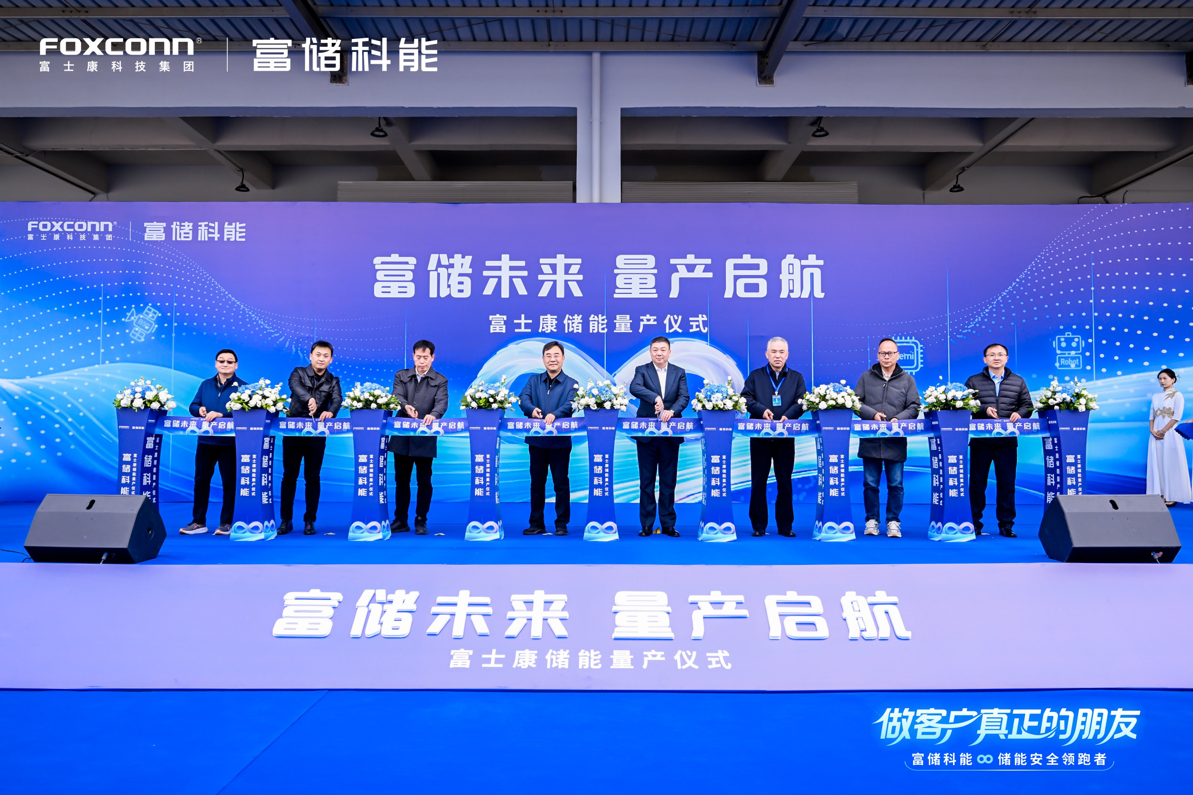 ,富士康旗下储能业务公司富士康新能源电池(郑州)有限公司举行“做客户真正的朋友·富储科能储能安全领跑者”——富士康储能量产暨新品发布会。