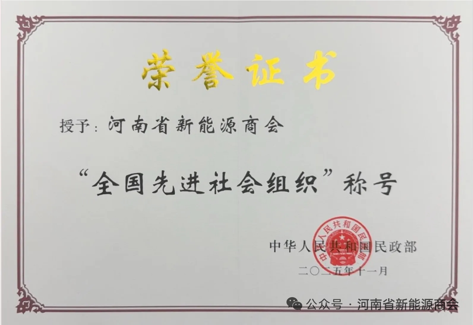 民政部授予河南省新能源商会“全国先进社会组织”称号