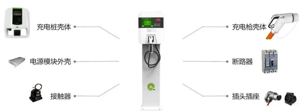 充电桩上游主要是充电桩部件制造,主要由五大核心构成:外壳、充电枪、主控板、充电模块及其他配套元件。其中,充电模块由芯片、功率器件等元器件构成,是核心成本项,占比超40%。而大功率充电设备的核心部件除了充电模块之外,还新增了液冷散热系统、智能控制器等。