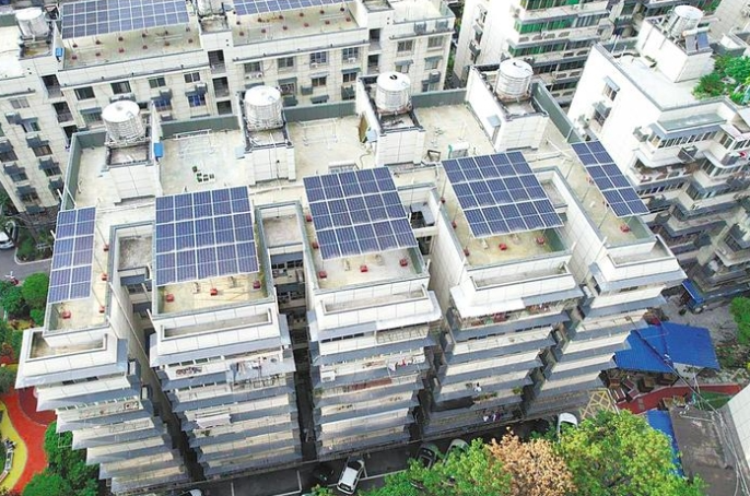 湖北 江汉区北湖街道新华小区的屋顶光伏。(湖北日报通讯员 许磊 摄)