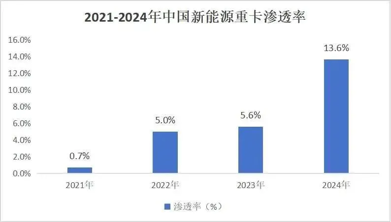 2021-2024年中国新能源重卡渗透率