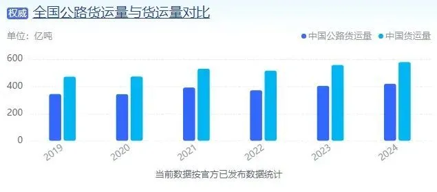 具体到运输方式上,2024年,公路货运量为418.8亿吨,占到578.4亿吨总货运量的72.4%。