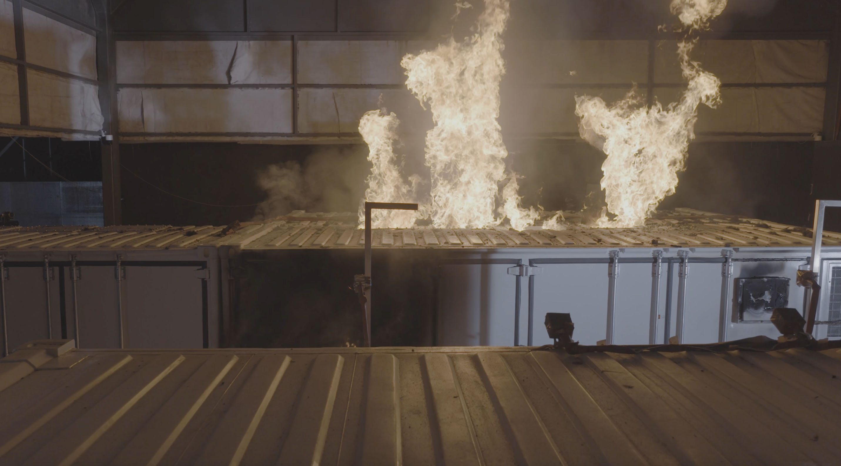 因为这是远景储能在密闭空间内进行的一场储能火烧测试。