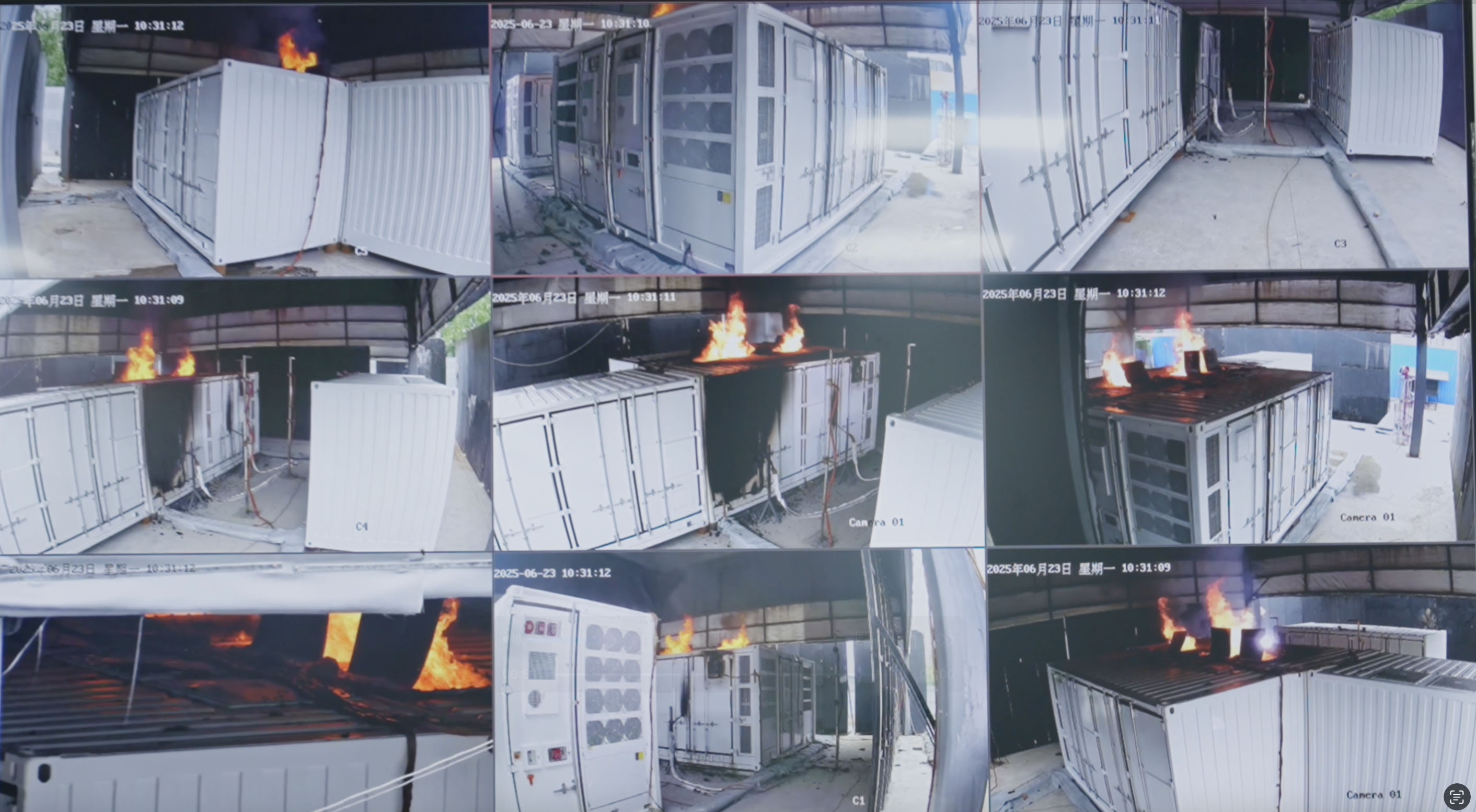 如果触发预制舱未发生结构变形或坍塌的状况,且相邻三个集装箱箱体均未发生燃烧和热失控传播,B、C、D三个箱体仅表面损伤,内部模组完好无损,那么可以说,这是一次成功的试验。