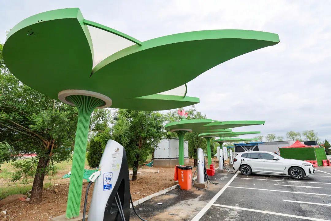 新能源车辆在京港澳高速河北段石家庄东服务区的充电区域充电。张晓峰摄(新华社发)
