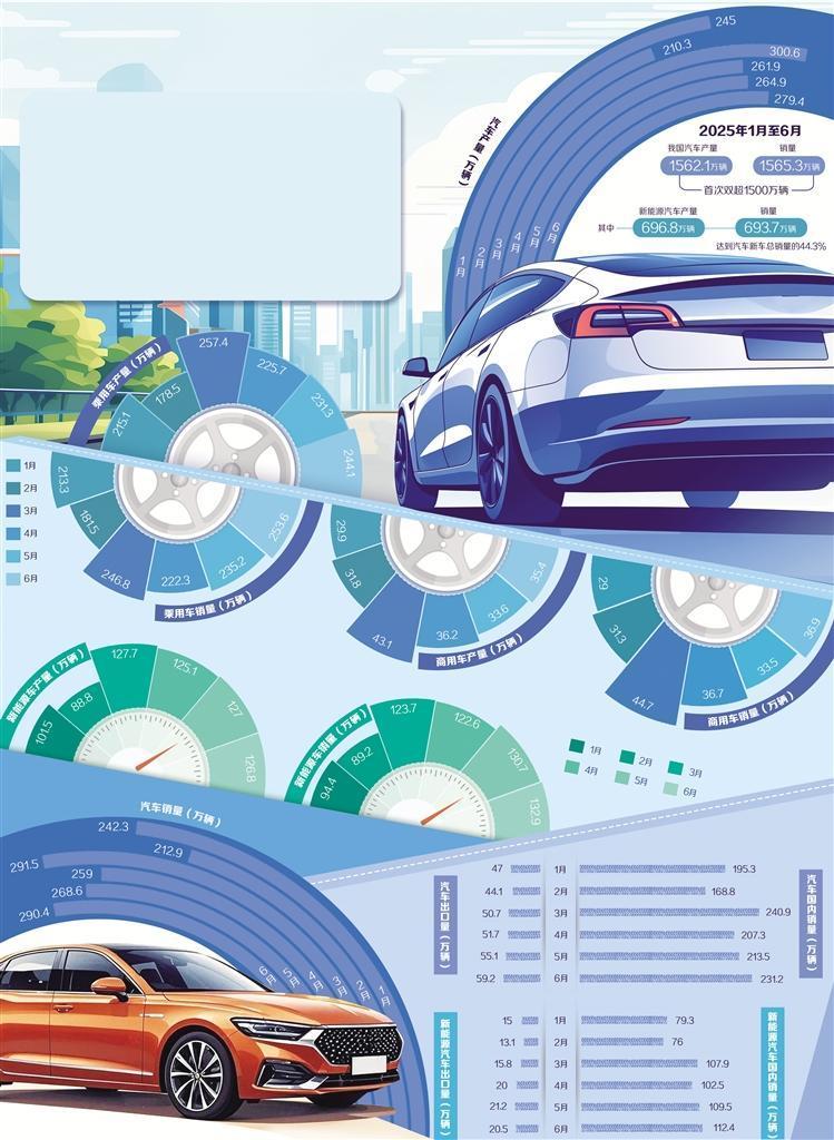 今年上半年,我国汽车工业交出亮眼成绩单——汽车产销量首次双双突破1500万辆,新能源汽车产销量同比增长均超过40%,汽车出口实现两位数增长。源源不断的创新活力,推动汽车产业驶向高质量发展之路。