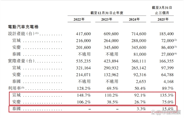 2024年4月投产的泰国基地,瞄准东南亚市场,但首年利用率仅3.3%,2025年一季度仅回升至15.4%,不过当前依然远低于盈亏平衡线。
