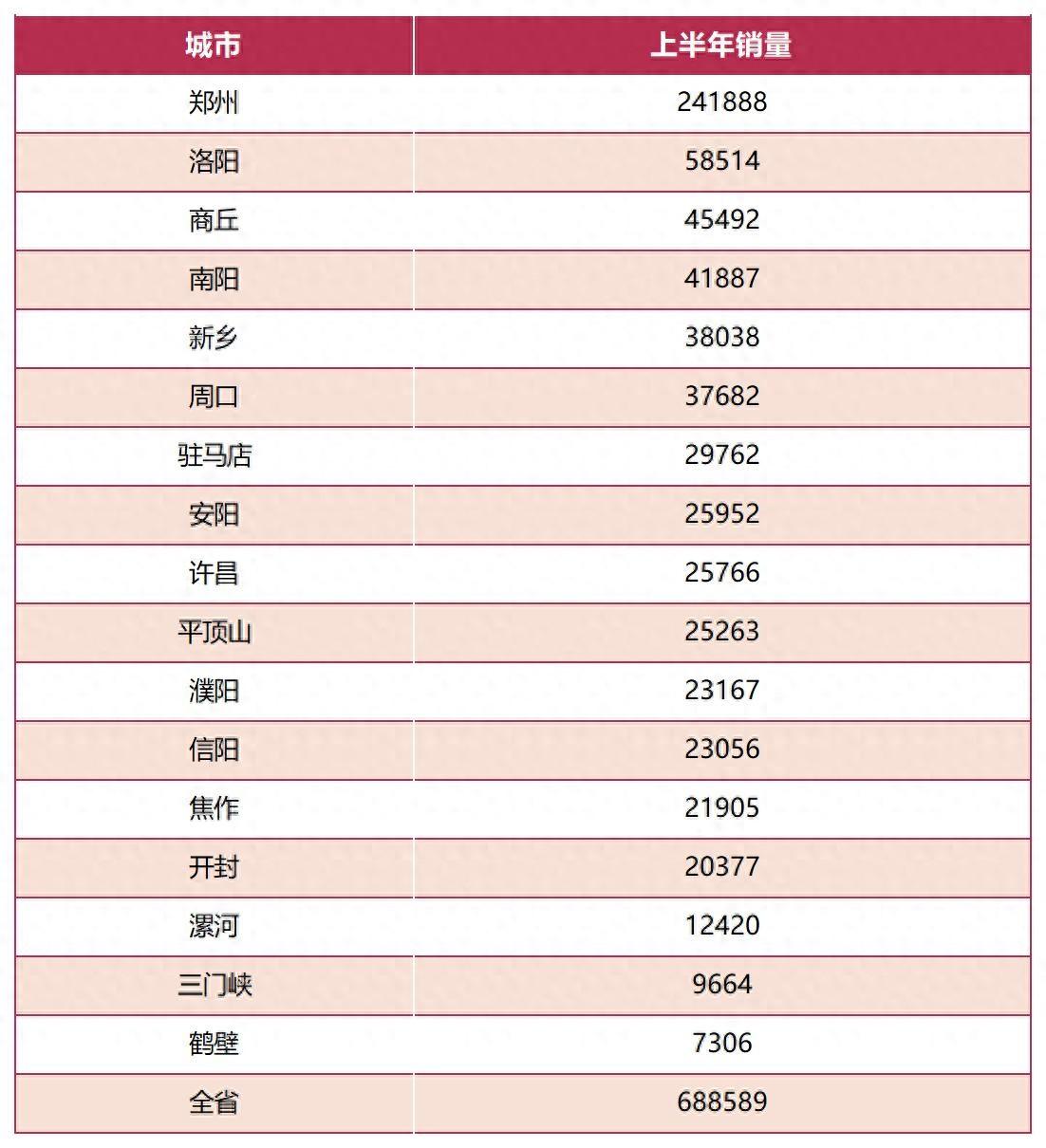 结合乘联会和保险公司等机构发布的数据,河南汽车市场上半年销售成绩浮出水面,全省汽车总销量达到688589辆,郑州成为全省销量担当,焦作增长速度最快,洛阳新能源车渗透率全省第一,商丘和南阳人口大市有大作为。成绩背后,是全省开展消费能力提升、产品消费扩大、服务消费提质等8大提升行动带来的持续拉动,更是河南作为经济大省的强大能量体现。