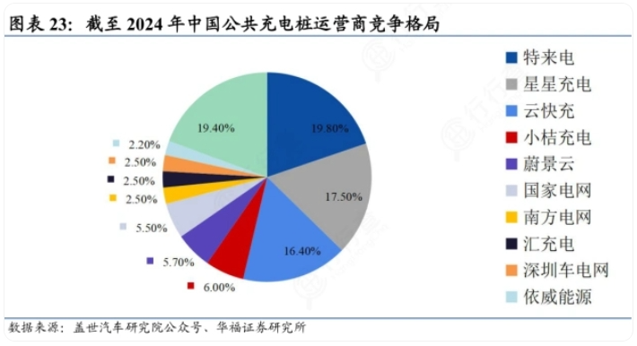 2025年,国内充电桩市场竞争格局高度集中,特来电、星星充电和云快充占据主导地位。根据2024年数据,特来电以19.8%的市场份额领先,星星充电和云快充分别占比17.5%和16.4%,前三家企业合计占据53.7%的市场份额。头部企业凭借技术优势、广泛布局和成熟模式脱颖而出。特来电在大功率充电桩领域占据优势,公共桩功率市占率达22.5%;星星充电以快速增长和广泛覆盖著称;云快充则专注于提供高效公共充电解决方案。