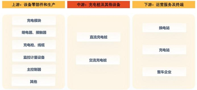 下游企业为运营服务商及终端客户,包括换电站、充电站、新能源汽车厂商及配套运营服务商。新能源汽车充换电设备设施产业链下游参与者包括星星充电、特来电、云快充、国家电网、南方电网、深圳车电网、小桔充电、奥动新能源、杭州伯坦、蔚来、特斯拉、比亚迪、