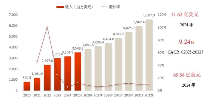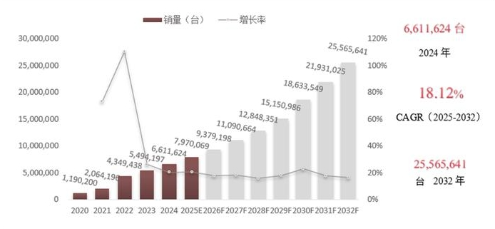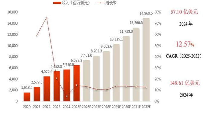 根据百谏方略(DIResearch)的深入调查研究,全球充电桩市场继续保持强劲的增长,2024年全球市场规模达57.1亿美元,销量突破660万台,预计到2032年将增长至149.61亿美元,年均复合增长率(CAGR)预计为12.57%(2025-2032)。中国将继续引领全球市场,欧洲市场的发展受益于“2035禁售燃油车”政策、补贴机制和高保有量基数,预计2032年市场规模将达到31.62亿美元。北美则在联邦拨款、税收减免政策刺激下实现快速突破,2032年收入将接近27.37百万美元。尽管亚太(不含中国)、拉美、中东非当前体量较小,但复合增速均在20%以上,具备结构性机会,特别是在基础设施起步阶段国家,如印度、巴西、阿联酋等,存在“从无到有”的跃迁空间。