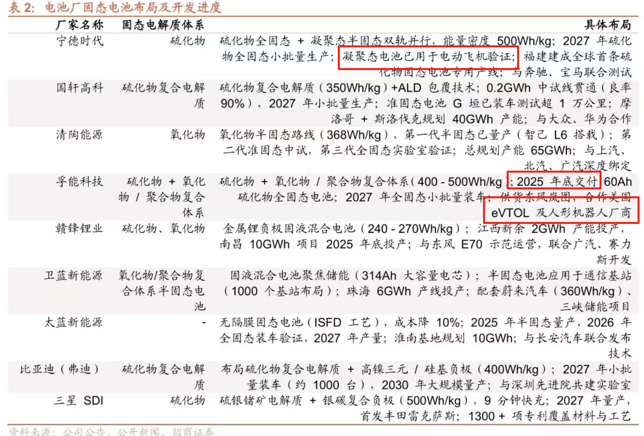 2.电池厂也没闲着:宁德时代硫化物路线一骑绝尘,400Wh/kg样品下线;孚能科技半固态电池直接供货飞行汽车eVTOL,拿下阿联酋30亿大单;蜂巢能源更是计划今年四季度就能试产半固态!