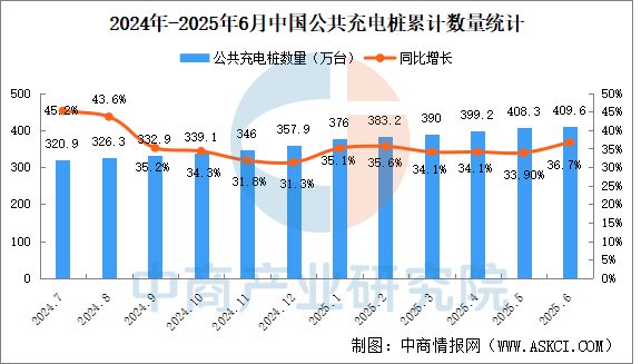 2025年6月全国充电桩运营情况:保有量同比增长36.7%