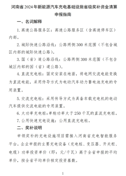 1.河南省2024年度新能源汽车充电基础设施省级奖补资金清算申报指南