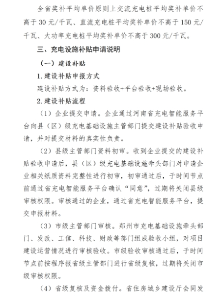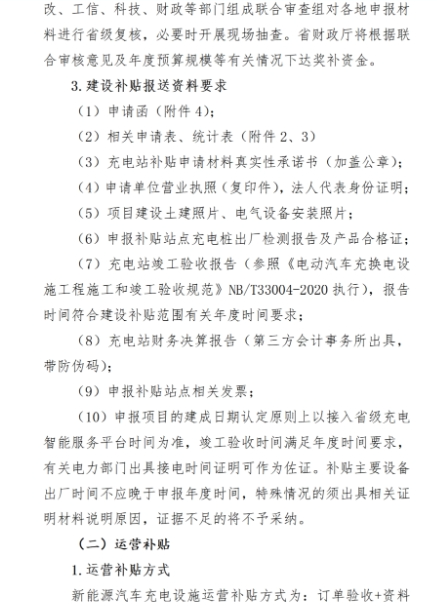 1.建设奖补。(1)企业通过省充电智能服务平台提交充电设施奖补申请。(2)县级充电基础设施主管部门对申请企业相关纸质资料完整性进行初审,初审通过后,通过省充电智能服务平台确认“同意”。审核通过的企业,应于2025年8月25日前通过省充电智能服务平台,提交申报材料。(3)市级充电基础设施主管部门会同发改、工信、科技、财政等部门对提交申请的项目全部审核,并于2025年9月15日前将审核报告等资料,通过省充电智能服务平台提交。(4)省住房城乡建设厅会同发改、工信、科技、财政等部门成立省级联合工作小组对市级审核通过的资料进行复核,必要时开展现场抽查。