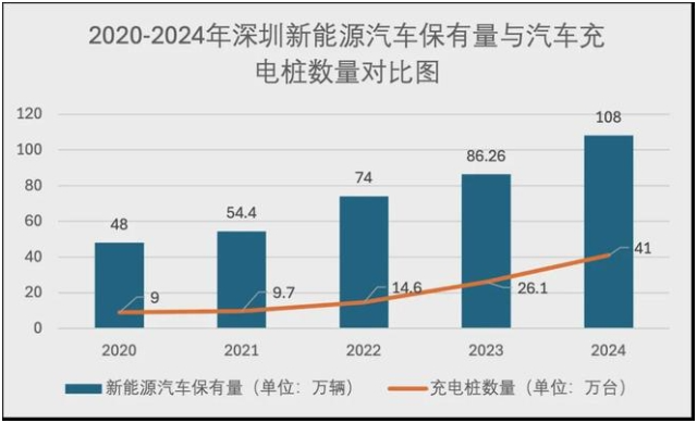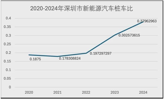 数据显示,2020年深圳全市充电桩仅为9万台,得益于"超充之城"计划的持续推进,截至2024年已突破41万台,增长近4.5倍。与此同时,深圳新能源汽车保有量快速增加,但充电桩的建设速度明显更快。桩车比从2020年的0.1875大幅跃升至2024年的0.38,实现翻倍增长。这一变化在2023年“超充之城”计划启动后尤为显著,超充站数量从最初的161座激增至2025年6月的1055座,年均增长率超过150%。