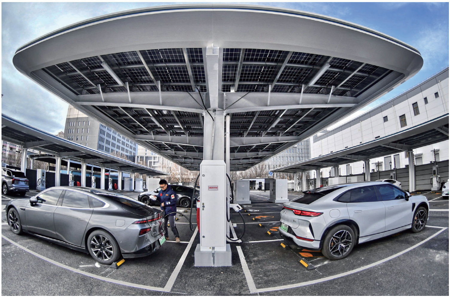 2024年12月25日,一座由国网北京电力公司建设的集光伏能源、超级快充、无线充电、智能机器人充电等多项先进技术于一体的智慧绿色充换电站在北京朝阳区投入运营。图/新华