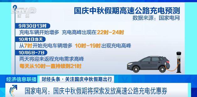 假期临近,全国各地陆续迎来新能源汽车出行高峰。国家电网预测,国庆中秋假期的出行充电高峰将集中在9月30日至10月1日,和10月6日至7日。国家电网将探索发放高速充电优惠券。