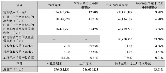 然而,与营收的「平稳」形成鲜明对比的,是其利润的「狂飙」。第三季度归母净利润同比大增41.21%,即便扣除非经常性损益,净利润增速依然高达35.47%。放眼整个前三季度,累计净利润增幅也达到了惊人的36.2%。