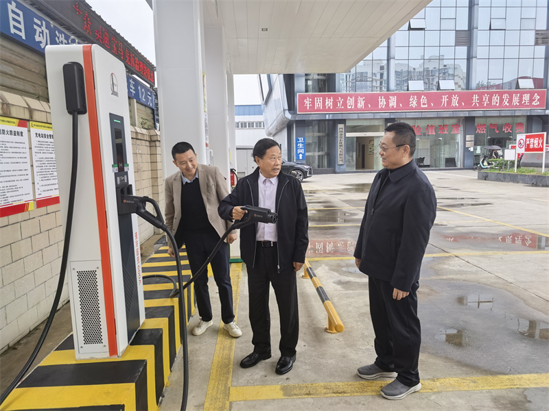 黄久长(中)在金堂燃气公司超充电站调研。王俊林摄