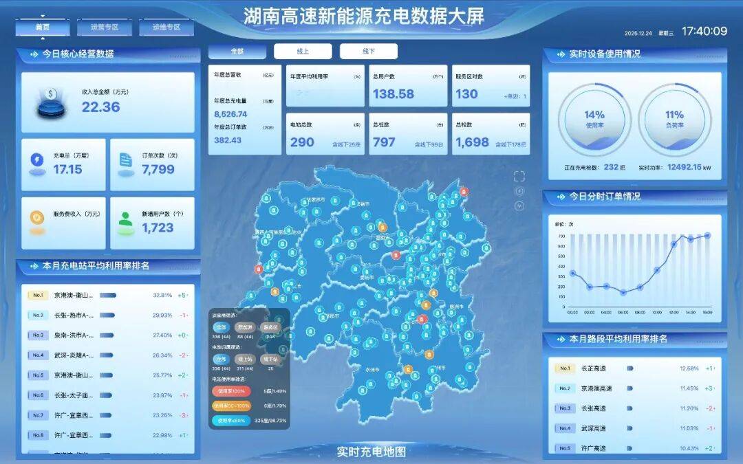 湖南高速新能源充电数据大屏。