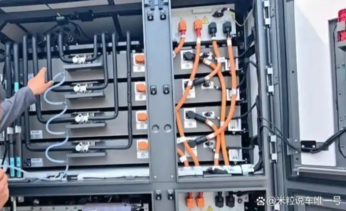 大家仔细看这款充电柜的内部,拥有4块电池,每个电池容量达到了46.4度电,总数超过了185度电。这其实是闲时充电,忙时快速放电。事实上我们的电车去比亚迪闪充充电时候,电量并非直接从电网上快充到我们车里的,而是比亚迪刀片电池充到了我们电车电池里面!这也解释的通,比亚迪为何宣传超快充不冲击电网,主要还是因为电量已经事先储存了,所以真的不会影响电网。