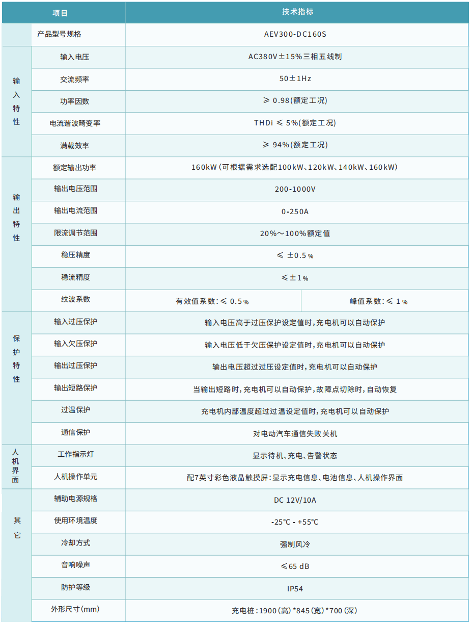 表1 AEV300-DC160SS一体式非车载直流充电机性能参数