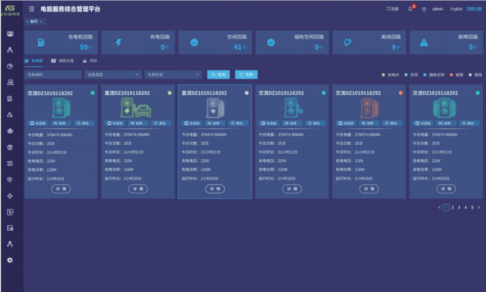 设备监控:显示设备实时信息、配套设备状态、设备实时曲线、关联订单信息、充电功率曲线等。