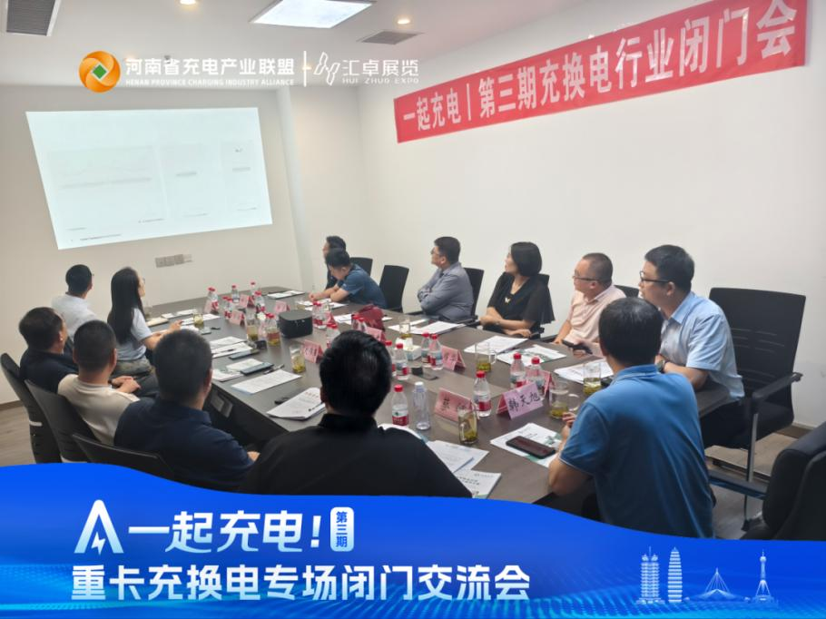 2025年8月8日下午,河南省充电产业联盟、郑州汇卓展览策划有限公司,共同举办一起充电丨第三期 重卡充换电专场行业趋势与资源协同闭门交流会。