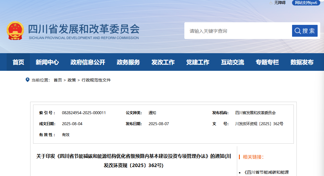 关于印发《四川省节能减碳和能源结构优化省级预算内基本建设投资专项管理办法》的通知(川发改环资规〔2025〕362号)