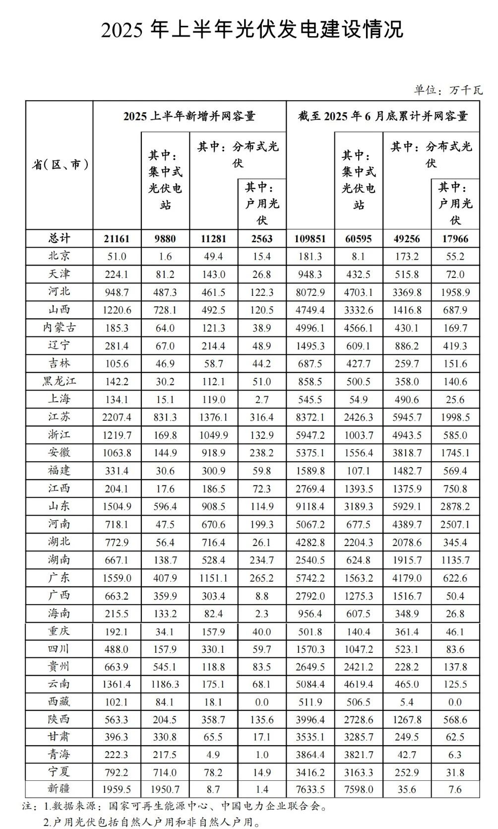 2025年上半年光伏发电建设情况