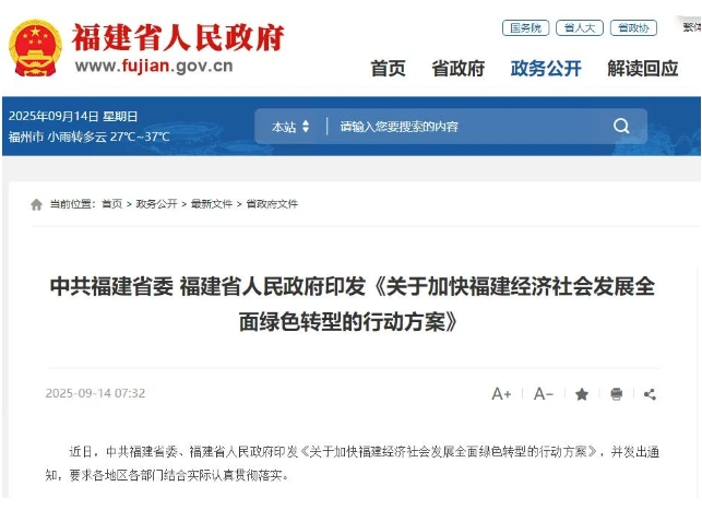 《关于加快福建经济社会发展全面绿色转型的行动方案》全文如下。