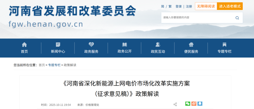 为贯彻落实《国家发展改革委国家能源局关于深化新能源上网电价市场化改革促进新能源高质量发展的通知》(发改价格〔2025〕136号)文件要求,结合我省实际,省发展改革委会同有关部门研究起草了《河南省深化新能源上网电价市场化改革实施方案(征求意见稿)》,现面向社会公开征求意见,欢迎有关单位和个人提出意见建议。