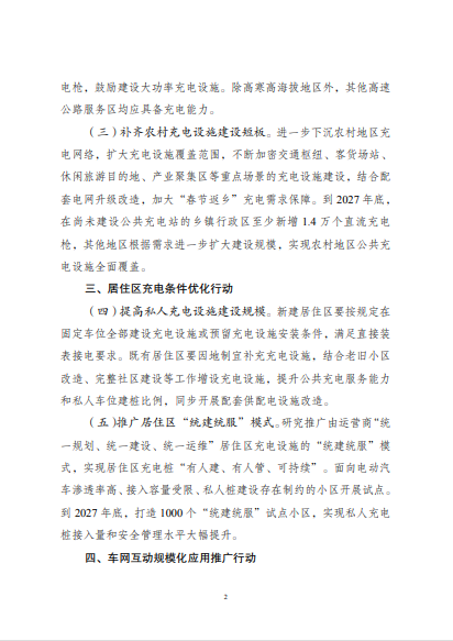 到 2027 年底,打造 1000 个“统建统服”试点小区,实现私人充电