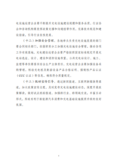 (十二)加强安全管理。各地牵头负责充电设施发展的部门