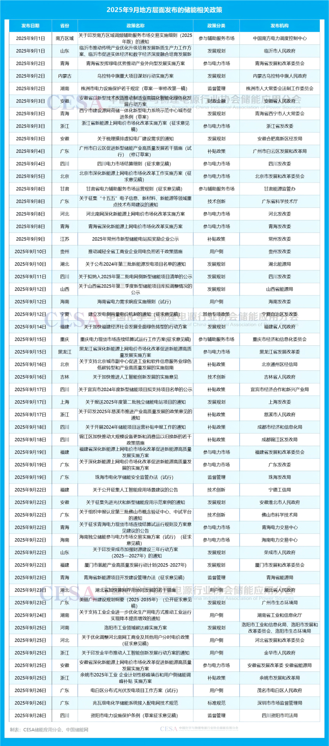 70项!9月储能政策:多省市136号文落地,加速构建新型电力系统